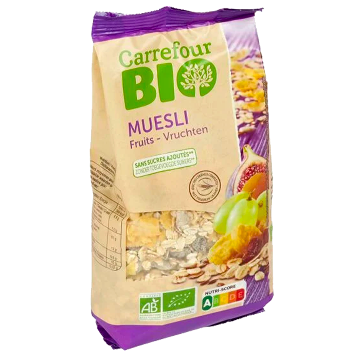 3 | ![]() | Muesli fruits - Carrefour bio Excellent - 100/100 Excellente quantité de fibres et protéines, biologique. |