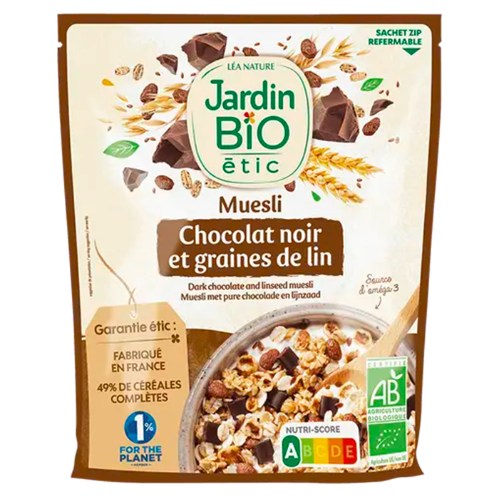 8 | ![]() | Muesli Chocolat Noir et Graines de Lin - Jardin Bio Excellent - 94/100 Sans additifs, excellente quantité de fibres et protéines, biologique. |