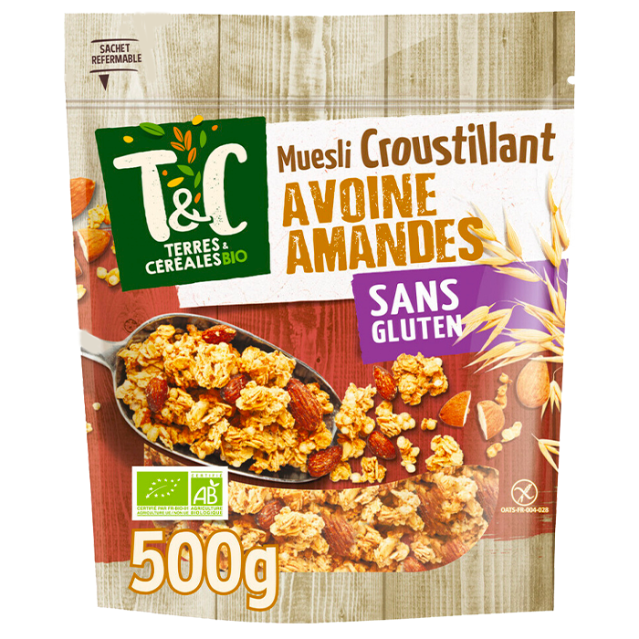 5 | ![]() | Muesli croustillant avoine amandes - Terres & céréales Excellent - 94/100 Sans additifs, biologique, très bonne quantité de fibres et protéines. |