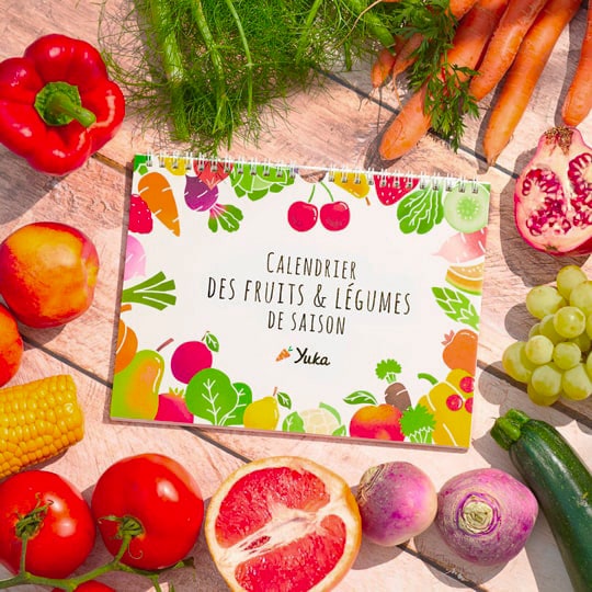 Respecter la saisonnalité, c'est important pour notre santé, pour la planète, mais aussi pour le goût. Yuka a réalisé un calendrier à accrocher dans sa cuisine afin de consommer toute l'année les fruits & légumes du moment. Ce calendrier contribue à soutenir financièrement le projet.