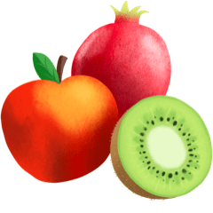 ![]() | Fruits: bananas, apples, pears, raspberries, figs, nectarines, etc. |