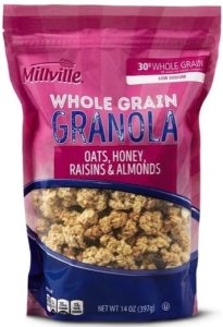 11 | ![]() | Whole Grain Granola Oats, Honey, Raisins & Almonds - Millville Excellent - 78/100 A high-fiber, protein-packed product, with no additives. |