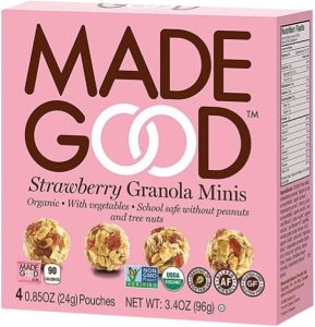 5 | ![]() | Strawberry Granola Minis - Made Good Excellent - 88/100 100% organic, contains no additives or saturated fats; rich in fiber and protein. |