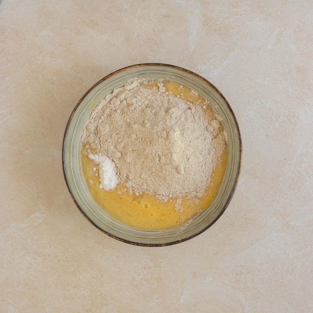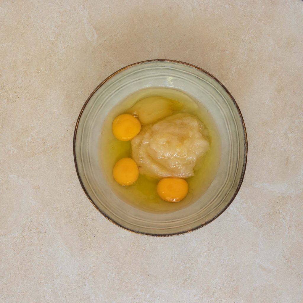 In a bowl, mix the eggs with the apple sauce and honey.