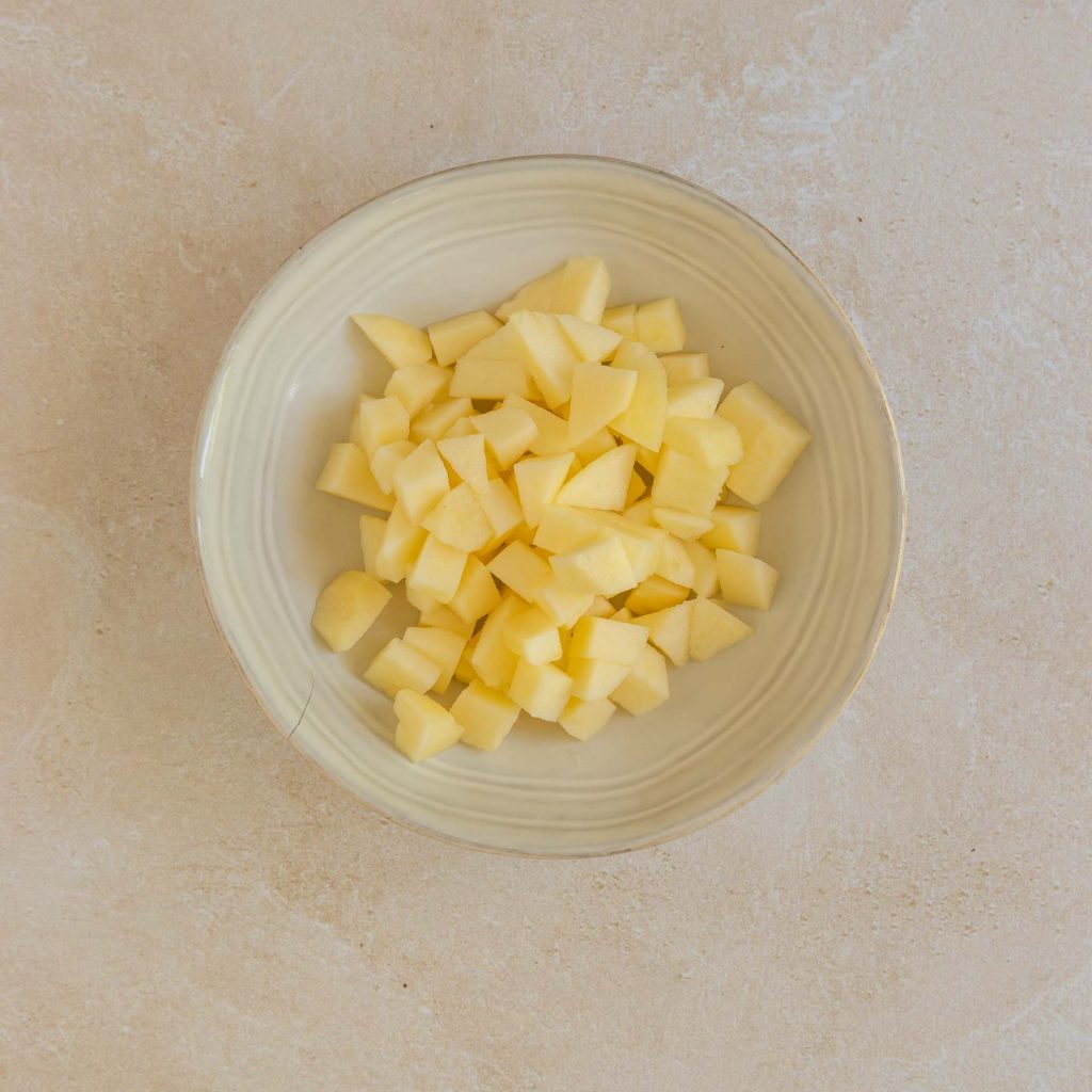 Peel then cut the apples into small cubes.
