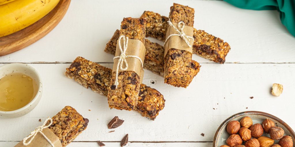 Manufactured granola bars are often loaded with refined sugars and additives. This recipe has only a handful of ingredients that you should already have at home! 🍌🍫 What are you gonna have for a snack?