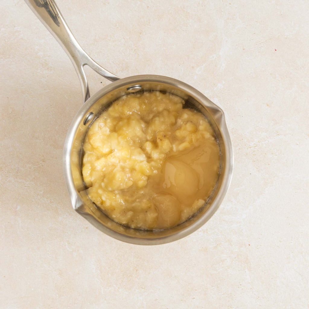 Mash the banana with a fork and place in a saucepan with honey. Allow the mixture to heat slowly on the stovetop for 5 minutes to make a compote.
