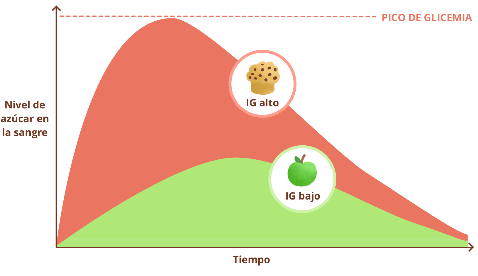 Consumir alimentos con un IG alto provoca picos de glucemia: el nivel de azúcar en la sangre aumenta rápida y bruscamente. A continuación, el organismo secretará una gran cantidad de insulina para reducir la glucemia. Esto hará que el nivel de azúcar en la sangre caiga rápidamente, creando un «pico».