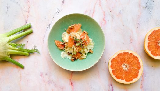 Te presentamos una receta llena de ánimo y frescura: ensalada cruda de hinojo, pomelo y nueces. El hinojo es una interesante fuente de vitamina B9 y potasio....