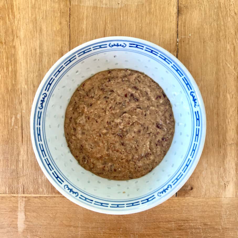 Está hecho con alubias rojas, que son parte de la familia de las leguminosas y que reemplazan muy bien la harina y la mantequilla. Las alubias rojas son muy nutritivas: son ricas en proteínas vegetales, fibras y hierro.