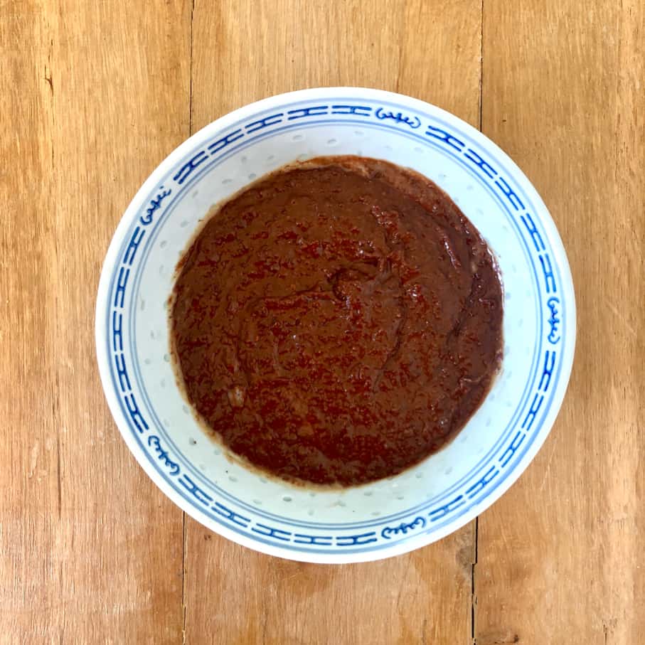 Enjuagar y escurrir las alubias rojas. Luego, mezclarlas con una licuadora o un tenedor para obtener una pasta homogénea.