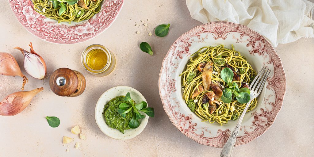 Il pesto di basilico è un classico della cucina italiana 🌿 di cui ti proponiamo una versione a base di noci e soncino, ora di stagione. Accompagnato con un bel piatto di spaghetti integrali, più ricchi di fibre, e scalogni saltati, è una vera delizia 🤤