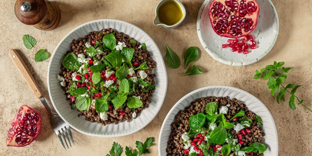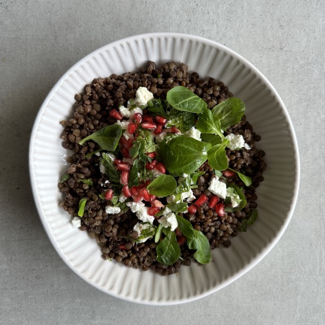 Le insalate non sono un piatto da prediligere solo in estate. Quest’insalata di lenticchie accompagnata da melagrana, songino, erbe aromatiche e feta è davvero deliziosa. Un piatto completo ed equilibrato, ma anche ricco di fibre, vitamine e antiossidanti… il mix ideale 🥇