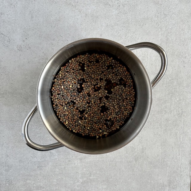 Versate le lenticchie in una pentola d’acqua fredda non salata. Fate cuocere per circa 25 minuti. A fine cottura, salate e scolate.