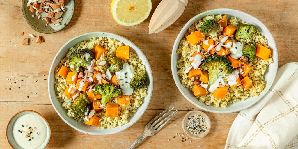 Esalta i sapori d’autunno con una ricetta facile e veloce da preparare, che associa patate dolci 🍠 e broccoli al forno 🥦 La salsa, a base di tahina (o crema di sesamo), limone e miele sarà un vero tocco di originalità. Grazie alla sua consistenza vellutata e un gusto deciso, renderà questo piatto delizioso.