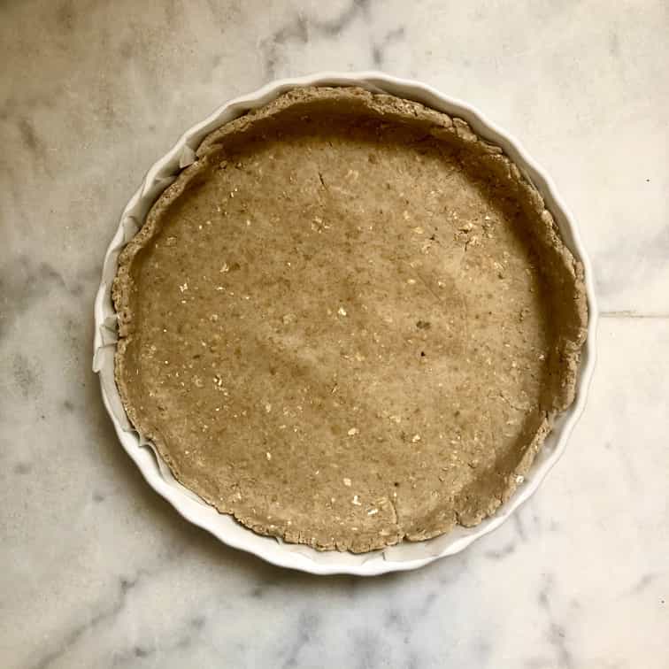 Stendete l’impasto (potete farlo tra due fogli di carta da forno se non si stende bene) e adagiatelo in uno stampo.
