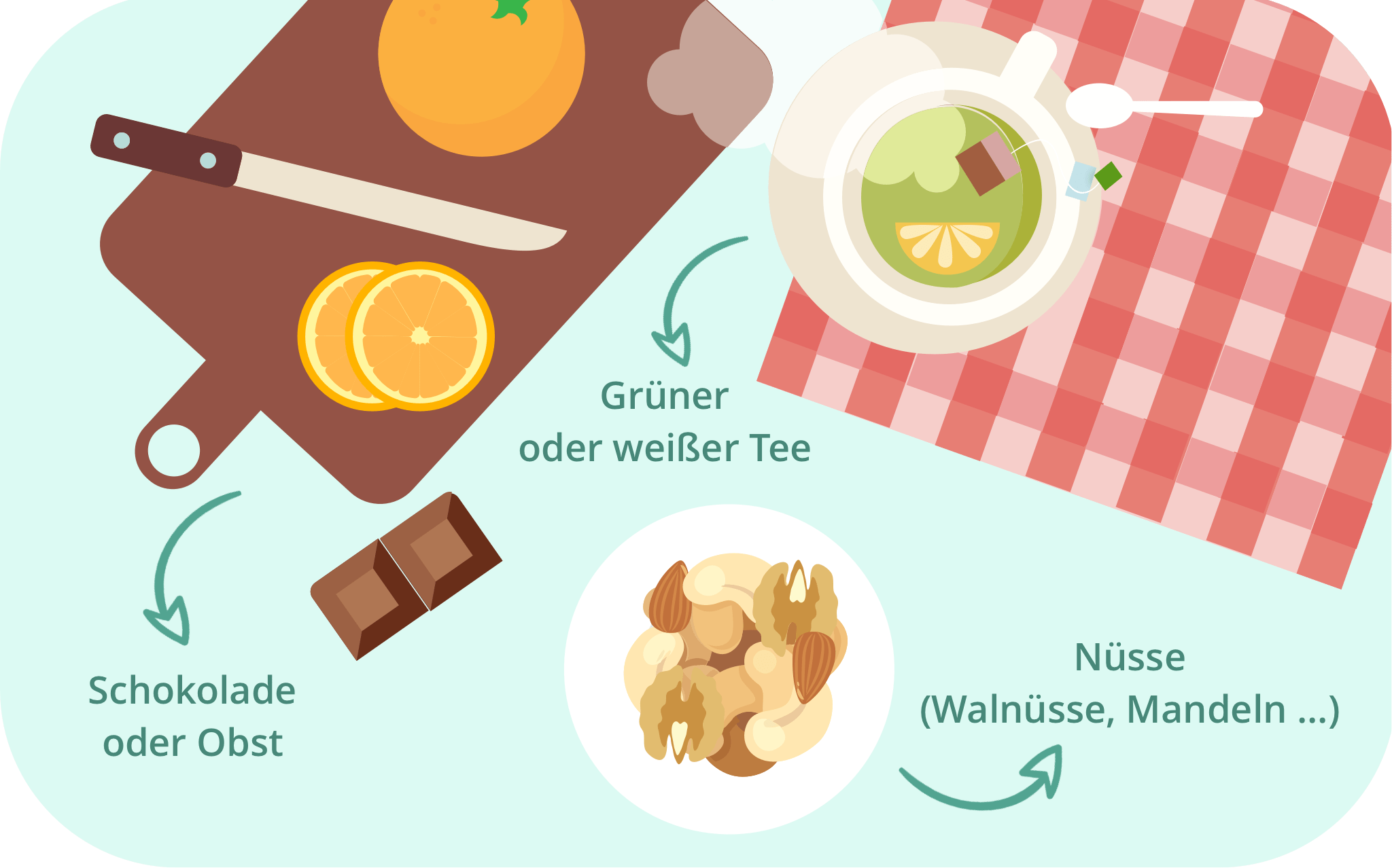 Hier unsere Empfehlungen für einen gesunden Snack, der Ihnen wieder neue Energie schenkt. Der vorgeschlagene Snack ist auch für Kinder geeignet.