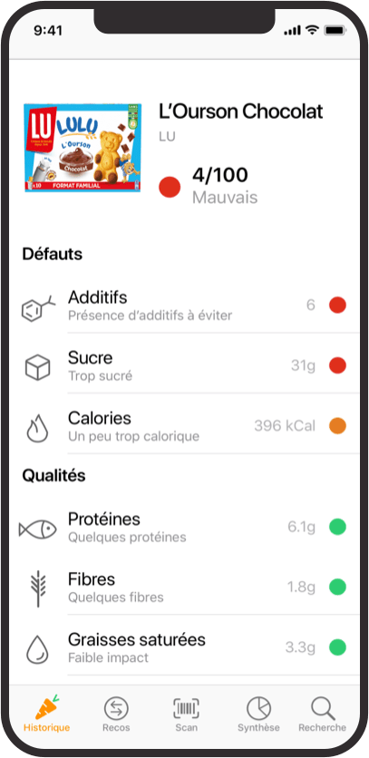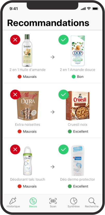 Pour les produits médiocres ou mauvais que vous avez scannés, Yuka recommande en toute indépendance des produits similaires meilleurs pour la santé.