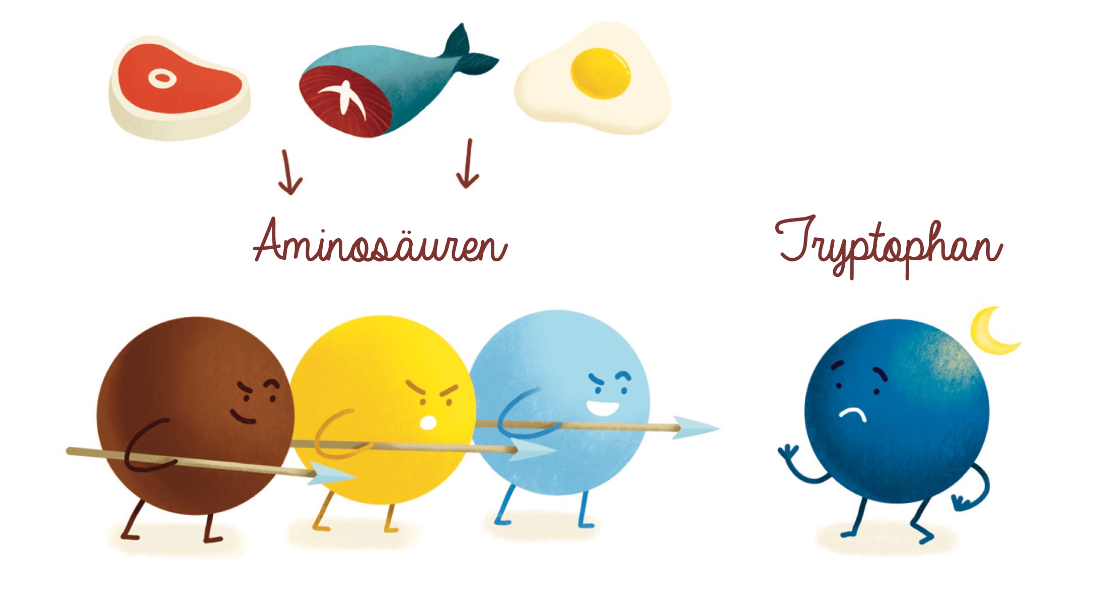 Dank der Ausschüttung von Insulin werden die Aminosäuren eher ins Gehirn als in die Muskeln geleitet. Sie sorgen dafür, dass Tryptophan im Gehirn ankommt und machen es für die Synthese von Serotonin besser verfügbar.