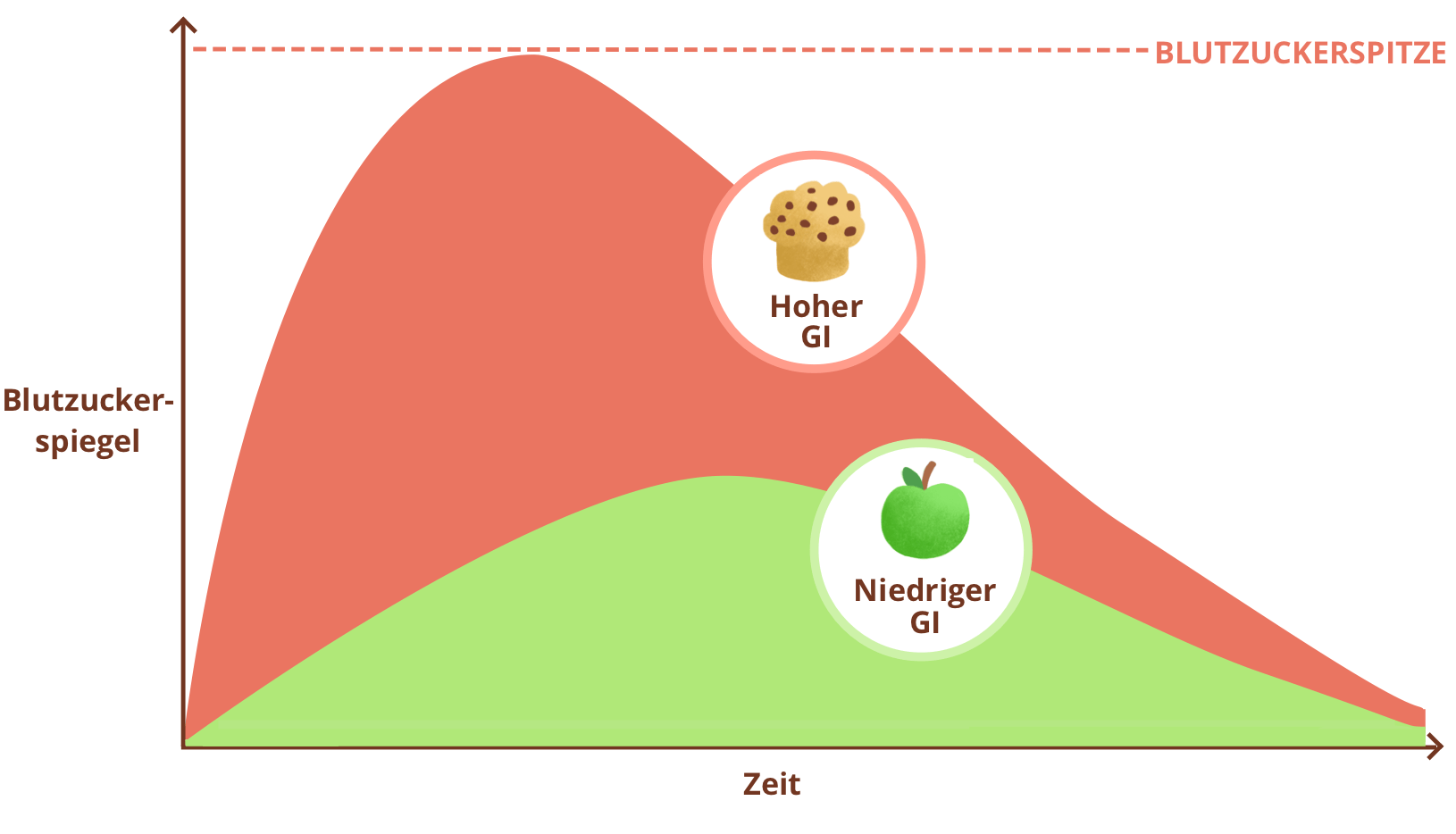 Der Verzehr von Lebensmitteln mit hohem GI verursacht Blutzuckerspitzen: Der Blutzuckerspiegel steigt schnell und stark an. Der Körper produziert dann eine große Menge Insulin, um den Blutzuckerspiegel zu senken. Dadurch sinkt der Blutzuckerspiegel rapide ab, was zu einem starken Ausschlag nach unten führt.