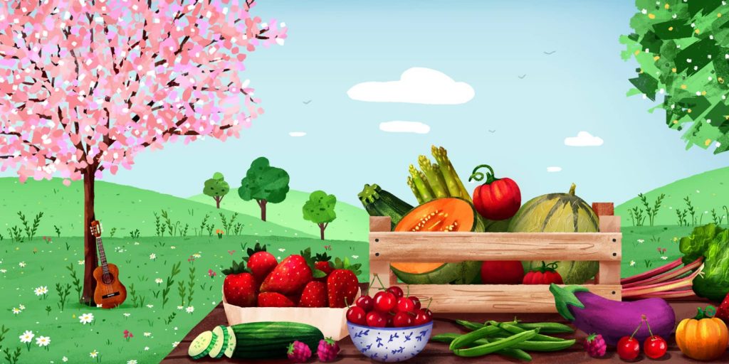 MaggioCiliegia, Fragola, Nespola, Rabarbaro, Valeriana, Asparago, Cipollotto, Fave, Lettuga, Rucola...